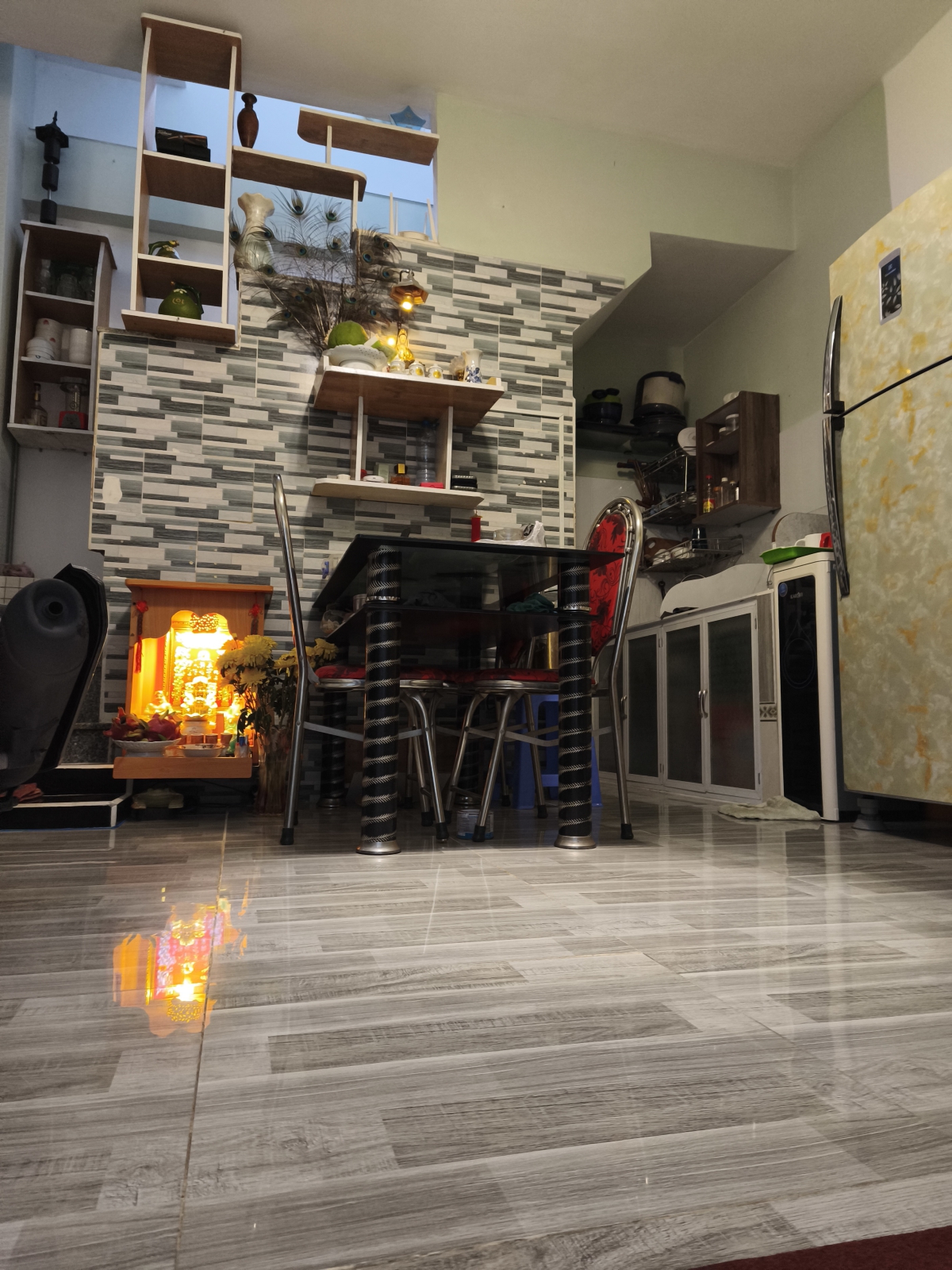 Diện tích: 4x6m, 1 trệt, 2 lầu, và tầng áp mái.
